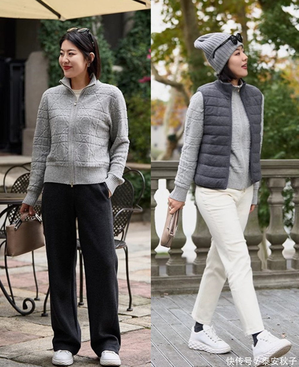 将夸张、繁复的衣物充足收起来,换上简约、欢跃、又显气质的穿搭,展现出独属于中年女性的稳重、与平缓感。