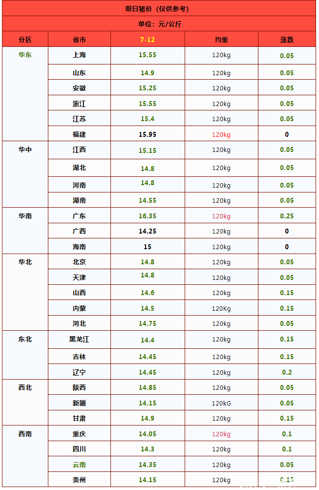 在南边商场,西南、华东、华中以及华南地区,猪价全线下降,川渝报价在14.05-14.3元/公斤,山东以及安徽报价在14.9-15.25元/公斤,江浙地区报价在15.4-15.55元/公斤,河南报价在14.8元/公斤,两湖报价在14.55-14.8元,两广地区猪价看护在14.25-16.35元/公斤!