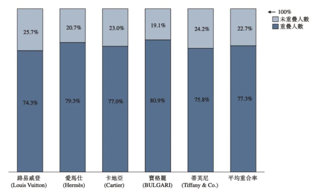 老铺黄金已是咫尺黄金品牌中的顶流,但它的规画远不啻于此。在最新发布的财报中,老铺黄金提到其破钞者与路易威登、爱马仕、卡地亚、宝格丽等国际五大豪侈牌的破钞者平均重合率高达77.3%。