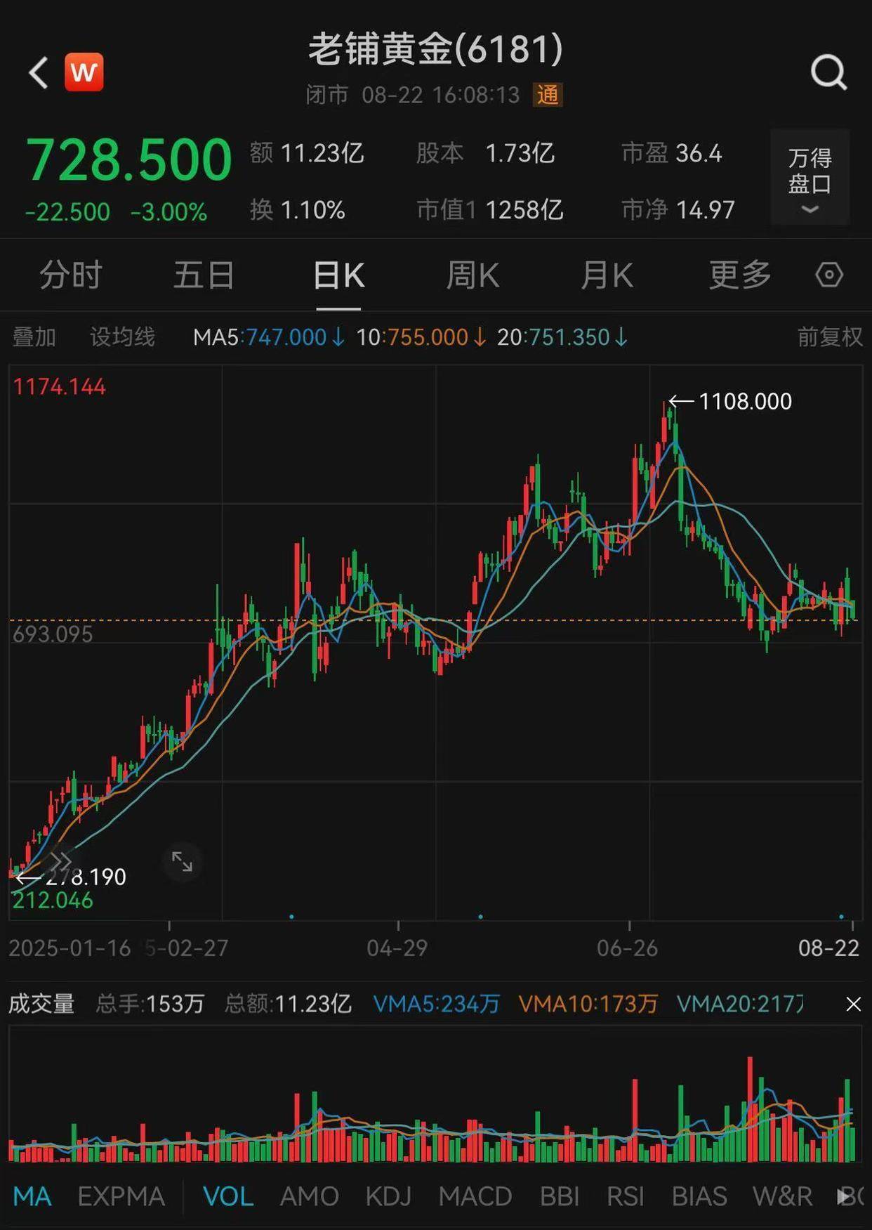 本年以来,老铺黄金股价涨超200%,最高时涨幅超26倍。中报公布今日,老铺黄金股价大涨8.84%;但中期功绩阐发会后,股价已连跌两日。市场心扉可见一斑,半年狂赚23亿的老铺黄金将来是否还能接续高速增长?