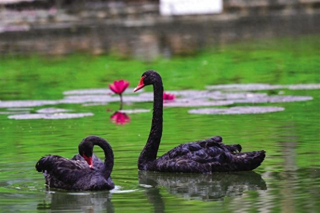 黑天鹅能顺利“落户”,离不开椰林湖的生态蝶变。据海南医科大学后勤处慎重东谈主唐天乐素养先容,椰林湖水面面积约9000以前米,早期为农田水洼。因永远未修缮清淤,湖中藻类曾一度大面积爆发,水体沾污,变成了一个死水塘。本年8月,学校决定对椰林湖偏激附进进行生态化鼎新升级,打造生态校园。重构水生植物、微生物协同净化系统,分层成就千里水植物苦草、挺水植物荷花及浮叶植物睡莲,投放黑鱼鱼苗,鼓舞水体从“藻型浊水”向“鱼草型净水”稳态转型。通过建立潜流湿地工程,专揽太阳能光伏系统发电,变成湿地出水的涌泉景不雅。如今的椰林湖仍是成为校园最好意思情景线,也为两只黑天鹅提供了宜居的环境。
