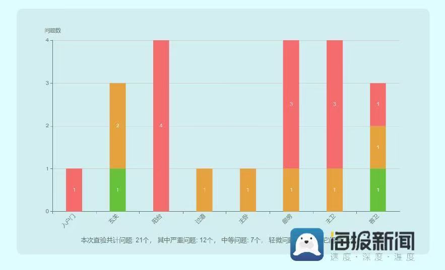 业主提供的视频和图片线路,地下车库尚未完工,部分区域存在渗水陈迹;电梯厅水井管相近的墙砖阑珊,存在安全隐患。也有业主找检测机构进行了房屋搜检。该房屋的讲演线路,搜检揣度21个问题,其中严重问题12个、中等问题7个、眇小问题2个。
